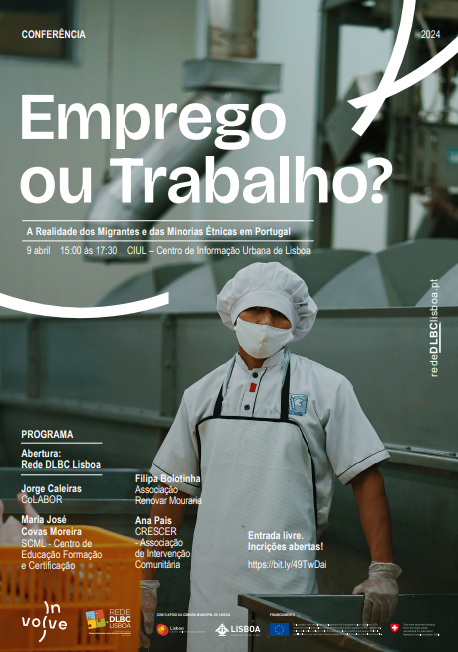 No âmbito deste projeto a Rede DLBC Lisboa está a organizar a conferência “Emprego ou Trabalho? A Realidade dos Migrantes e das Minorias Étnicas em Portugal”, no dia 9 de abril de 2024, a partir das 14h00, no Centro de Informação Urbana de Lisboa (CIUL), em Lisboa.