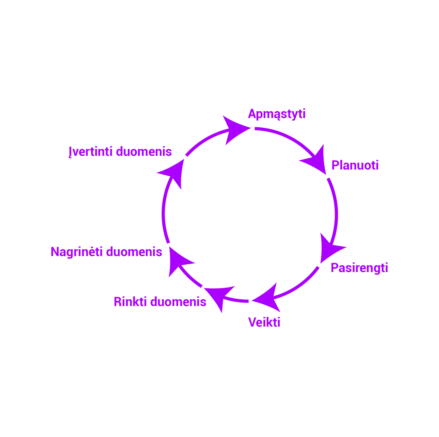VEIKIMAS: Tai - konkreti patirtis, kuri karūnuoja visą ratą mokymosi ratą, kuomet yra integruojami visų šešių prieš tai atliktų žingsnių rezultatai į realią patirtį.